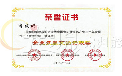 企業(yè)發(fā)展突出貢獻獎榮譽證書