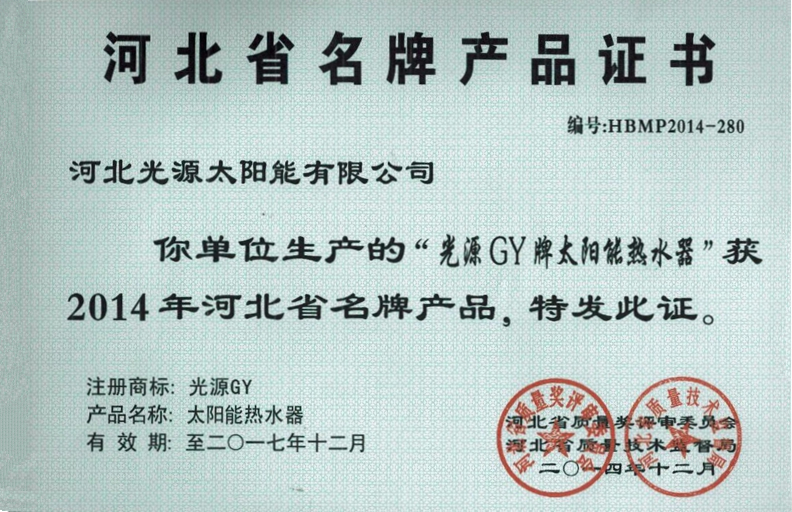 河北省名牌產(chǎn)品證書