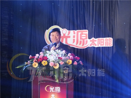 首先,12月6日上午9:30,光源年會隆重開幕。在年會上,中國太陽能熱利用產(chǎn)業(yè)聯(lián)盟副理事長、中國太陽能熱利用產(chǎn)業(yè)協(xié)會副理事長、河北光源太陽能科技有限公司董事長李成彬致辭。他代表光源公司對各位領(lǐng)導(dǎo)、專家、經(jīng)銷商朋友的到來表示熱烈歡迎和衷心感謝,對光源2014年取得的成績和2015年發(fā)展方向進行了總結(jié)和展望。李成彬指出,2014年是光源發(fā)展史上不平凡的一年,在國內(nèi)經(jīng)濟增速放緩的大背景下,太陽能光熱行業(yè)也受到極大影響。但光源勇敢拼搏、堅定信念,以市場為導(dǎo)向,以銷售為龍頭,產(chǎn)量雖然相比去年有所下滑,然而,我們依然對太陽能光熱行業(yè)的發(fā)展前景充滿信心,相信太陽能光熱的春天一定還會到來。行業(yè)領(lǐng)導(dǎo)羅振濤、霍志臣、張曉黎、賈鐵鷹、楊桂元先后講話。在講話中,領(lǐng)導(dǎo)們肯定了光源跨越發(fā)展、科技創(chuàng)新取得的喜人成績,肯定了光源在全國同行業(yè)中的地位和作用,對光源未來發(fā)展提出了指導(dǎo)性意見。光源公司總經(jīng)理劉迎波在講話中詳細分析了光源公司面對的市場形勢,他說,光源公司在今后的發(fā)展道路上要審時度勢,及時調(diào)整經(jīng)營戰(zhàn)略和營銷政策,做精做細終端市場,和廣大經(jīng)銷商一起,打造符合光源特點的企業(yè)發(fā)展之路。