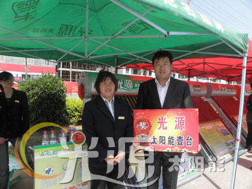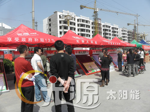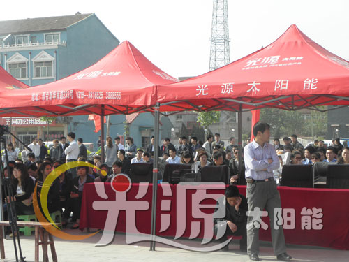 廣場(chǎng)的一側(cè),光源銀月亮、浴美人系列太陽(yáng)能列隊(duì)排開,漂亮的機(jī)型,明碼標(biāo)價(jià)的質(zhì)優(yōu)價(jià)廉產(chǎn)品,吸引了廣大老百姓駐足凝神觀看!實(shí)實(shí)在在的優(yōu)惠政策,在加上工作人員耐心細(xì)致的講解,廣大老百姓紛紛踴躍定機(jī)!