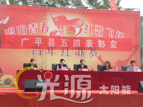 2011年5月4日,值此五四青年節(jié)到來(lái)之際,由邯鄲市廣平縣政府主辦,光源太陽(yáng)能贊助的“光源杯”青年紅歌賽在廣平縣文化廣場(chǎng)隆重舉行!