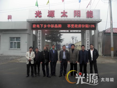 10月20日一場(chǎng)細(xì)雨降臨牛城,千年古城變得更加冷艷迷人。在這深秋時(shí)節(jié),山西客戶耿軍一行6人來(lái)到光源公司,參觀了光源太陽(yáng)能生產(chǎn)線和倉(cāng)儲(chǔ)物流中心,參觀了剛剛獲得國(guó)家專利的內(nèi)聚光式真空管太陽(yáng)能,在產(chǎn)品展示大廳領(lǐng)略了光源太陽(yáng)能九大系列新品風(fēng)采。