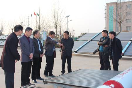 聽取“太陽能采暖系統(tǒng)”性能講解 周寶戰(zhàn)(左三)