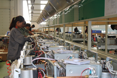 生產(chǎn)車間:不斷改進(jìn)工藝,合理安排人員,逐步提高生產(chǎn)效率,電鍋爐日生產(chǎn)能力由150臺(tái)提高到了400臺(tái)。壁掛爐日產(chǎn)可達(dá)300臺(tái)。