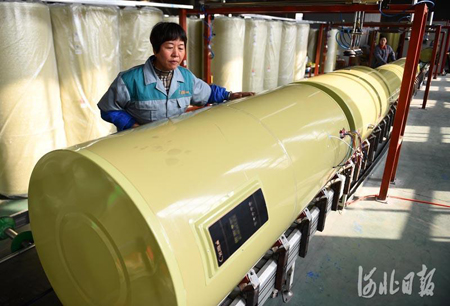 11月10日,河北光源太陽能科技有限公司工人在加工蓄熱式智能電鍋爐。