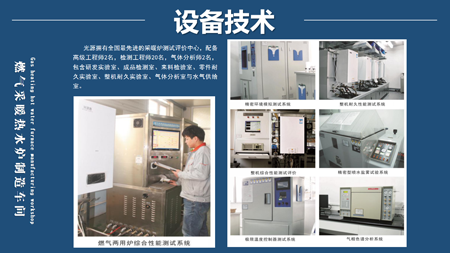 光源擁有全國最先進(jìn)的采暖爐測試評價中心,配備高級工程師2名,檢測工程師20名,氣體分析師2名,包含研發(fā)實驗室、成品檢測室、來料檢驗室、零件耐久實驗室、整機(jī)耐久實驗室、氣體分析室與水氣供給室。