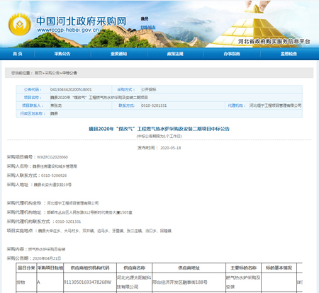 魏縣2020年“煤改氣”工程燃?xì)鉄崴疇t采購(gòu)及安裝二期項(xiàng)目